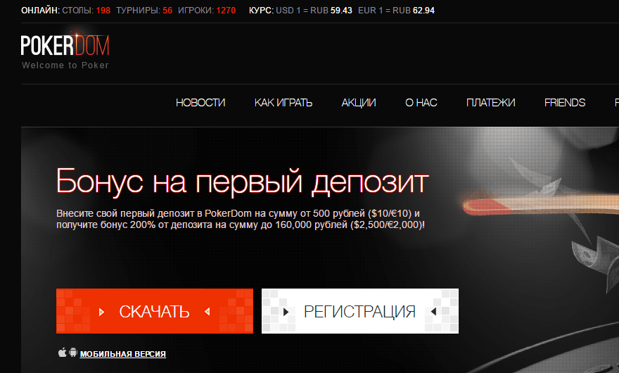Самым популярным предложением от Pokerdom были безвозмездные десять долларов. Их же можно было получить в символичном эквиваленте 777 рублей